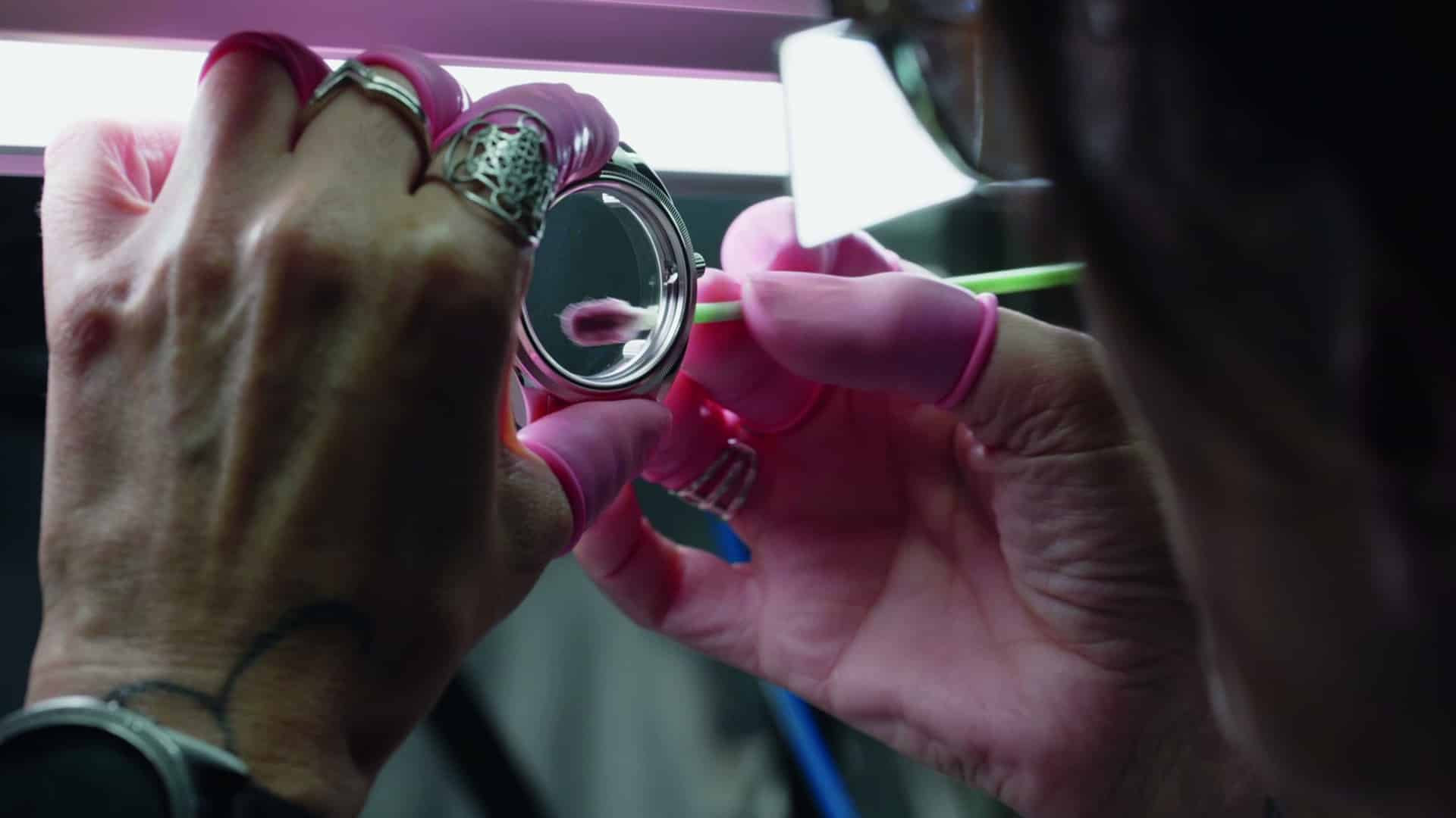 Les opérations incluent notamment le chassage des glaces dans les fonds ou les lunettes, ainsi que le chassage des tubes dans la carrure. Chaque pièce est préparée individuellement avant d’être intégrée à l’assemblage final.