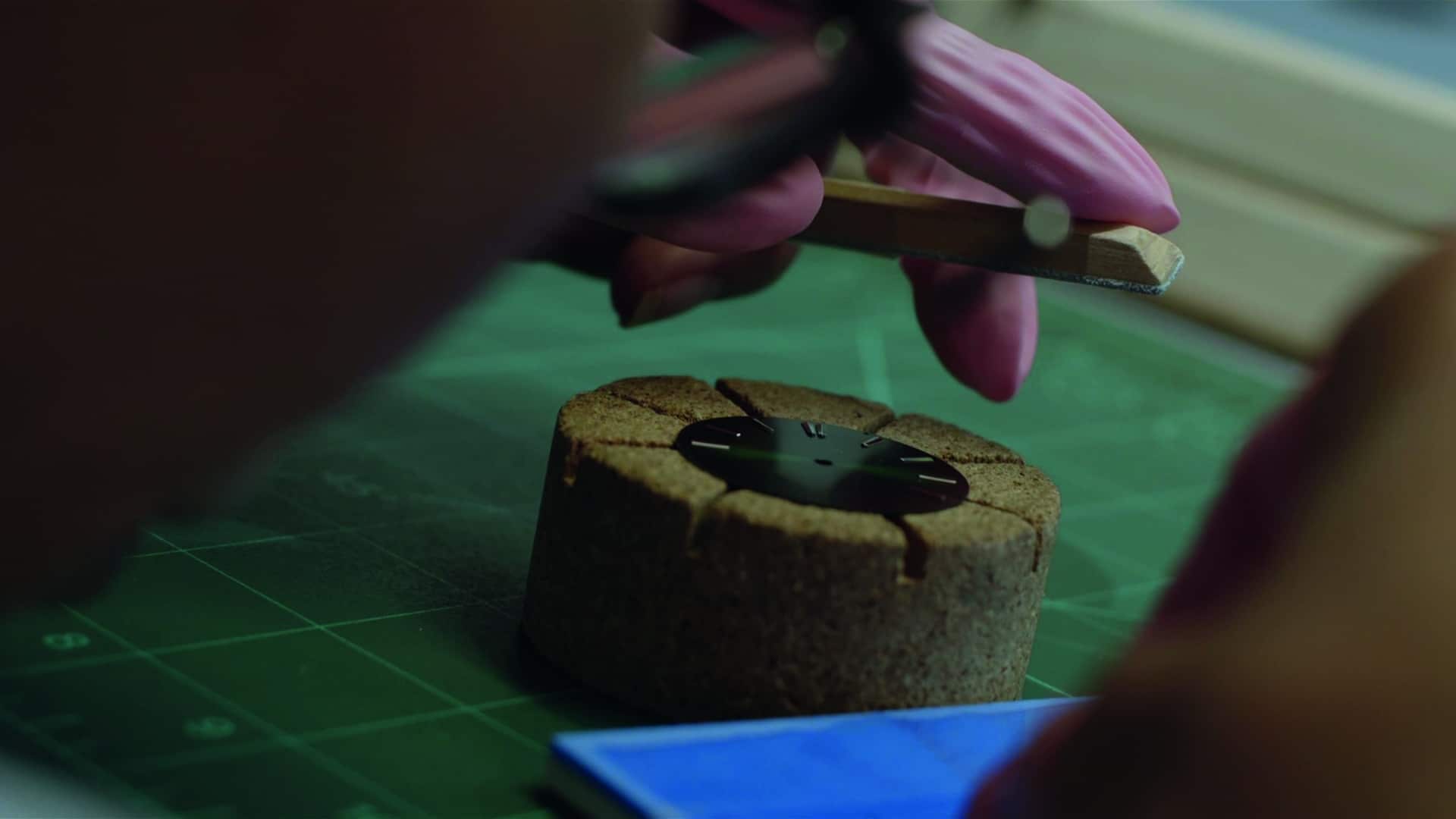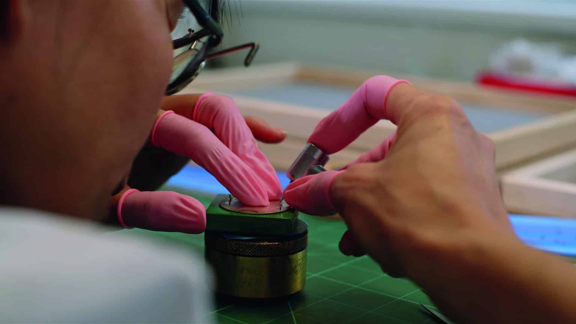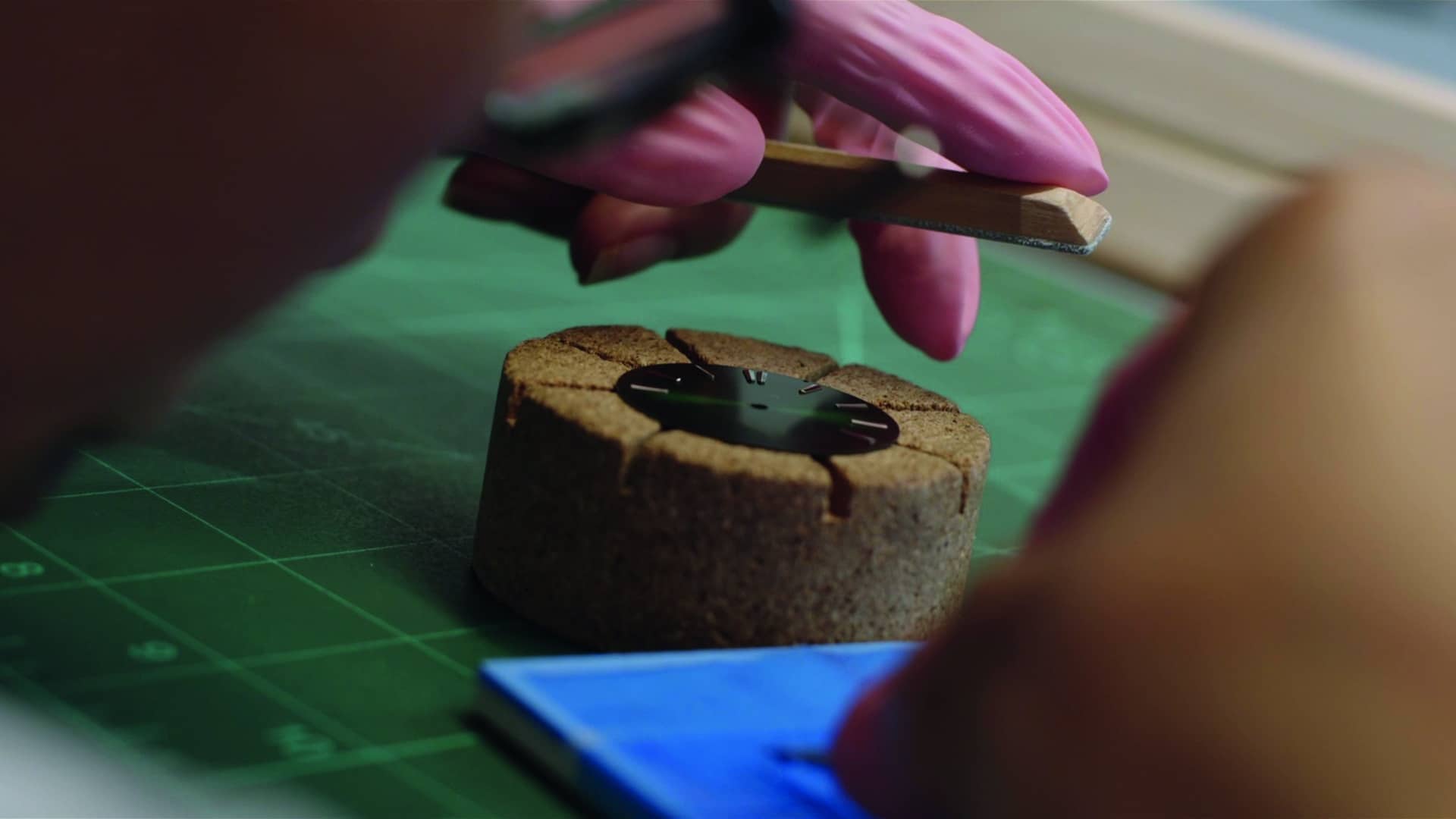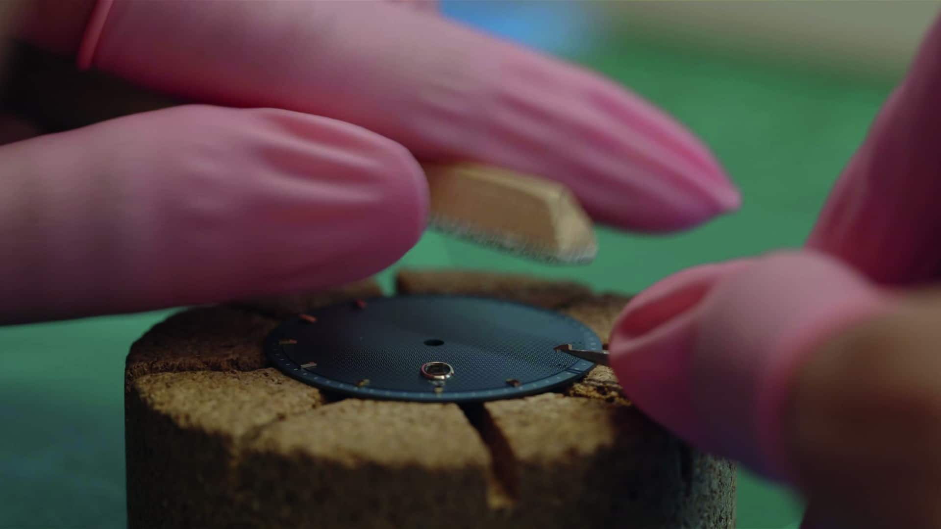 La pose de pierres est l’une des tâches les plus délicates : il faut éviter de casser les pierres et garantir un alignement parfait. Les cadrans sertis deviennent des pièces uniques, reflétant la finesse du travail manuel et l’exigence de l’atelier.